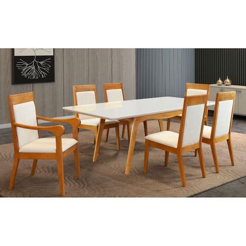 Sala de Jantar Completa Madeira Maciça com 6 Cadeiras 2,0x01,0m - Escócia - Art Salas