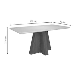 Mesa de Sala Jantar Maitê c/Tampo Madeirado Vidro Canto Curvo 160X80cm Nature/Off White - Cimol