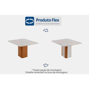 Mesa de Sala Jantar Maldivas c/ Tampo Madeirado c/ Vidro Canto Curvo 90X90cm Flex Naturale/Naturale ou Off White - Rufato