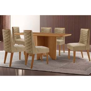 Sala de Jantar Completa Nevada c/ Tampo Madeirado Canto Curvo 180x90cm e 6 Cadeiras Dafne Madeira Maciça Naturale - Capuccino/Linho Capuccino - Rufato Abaixo segue os produtos do KIT: Sala de Jantar Completa Nevada c/ Tampo Madeirado Canto Curvo 180x90cm e 6 Cadeiras Dafne Madeira Maciça Naturale - Capuccino/Linho Capuccino - Rufato