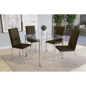 Sala de Jantar Completa Reno c/ Tampo Vidro 90cm + 4 Cadeiras Amsterdã Cromado/Courano Marrom - Kappesberg