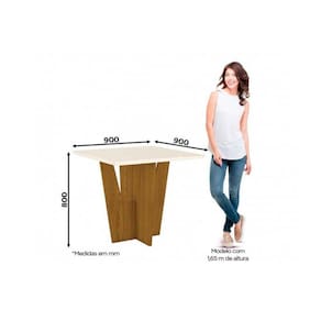 Mesa de Sala Jantar Vértice + Tampo Madeirado 90x90cm Nature/Off White - Henn
