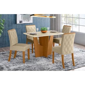 Sala de Jantar Completa Vértice c/ Tampo Madeirado c/ Vidro 120cm + 4 Cadeiras Vita Nature/Veludo Light Linho - Henn Abaixo segue os produtos do KIT: Sala de Jantar Completa Vértice c/ Tampo Madeirado c/ Vidro 120cm + 4 Cadeiras Vita Nature/Veludo Light Linho - Henn