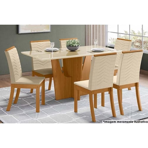Sala de Jantar Completa Vértice Tampo Reto Madeirado c/Vidro 160x80cm e 6 Cadeiras Isa Nature/Veludo Light Linho - Henn Abaixo segue os produtos do KIT: Sala de Jantar Completa Vértice Tampo Reto Madeirado c/Vidro 160x80cm e 6 Cadeiras Isa Nature/Veludo Light Linho - Henn