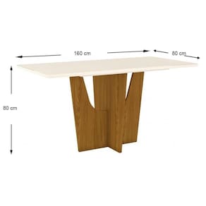 Mesa de Sala Jantar Vértice c/Tampo Madeirado Vidro 160x80cm Nature/Off White - Henn
