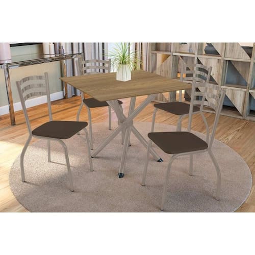 Sala de Jantar Completa Volga c/ Tampo de Madeira 90cm e 4 Cadeiras Portugal Niquel/Nogueira - Marrom - Kappesberg Abaixo segue os produtos do KIT: Sala de Jantar Completa Volga c/ Tampo de Madeira 90cm e 4 Cadeiras Portugal Niquel/Nogueira - Marrom - Kappesberg
