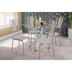Sala de Jantar Completa Volga c/ Tampo de Vidro 90cm e 4 Cadeiras Lisboa Cromada - Courano Bege - Kappesberg Abaixo segue os produtos do KIT: Sala de Jantar Completa Volga c/ Tampo de Vidro 90cm e 4 Cadeiras Lisboa Cromada - Courano Bege - Kappesberg
