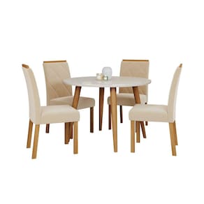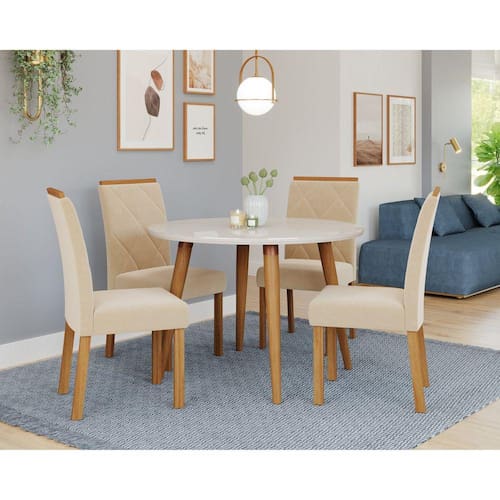 Sala de jantar Dani com vidro de 1,30x0,80 com 4 cadeiras Fernanda. Que tal reunir a sua família para um jantar? Nesse momento a Cimol vai está presente, proporcionando situações agradáveis e descontraídas! A mesa Dani possui os pés em madeira tauari, seu tampo é em mdf/vidro com bordas chanfradas e acabamento em laca. Já as cadeiras Fernanda são uma ótima opção pois a sua estrutura é toda em madeira tauari com pintura em verniz, o assento e encosto possui espumas de alta densidade proporcionando maior conforto. Com um design inovador, a Cimol busca sempre um estilo moderno para o seu ambiente! Medida da Mesa (A x L x P): 77cm x 110cm Peso da Mesa: 35,7 kg Mesa suporta até: 40.0000 Acabamento da Cadeira/Banco: Verniz Natural Acabamento da Mesa: Verniz Almofada do assento: Fixa Ambiente Principal: Sala de Jantar Cadeira/Banco Estofada: Encosto e Assento Estofados Cadeira/Banco estofada: Encosto e Assento Estofados Cadeira/Banco suporta até: 100.0000 codigo_ean: 7909903592700 Complexidade da Montagem: Média: pode ser montado por mais de uma pessoa e/ou necessite de maior conhecimento para montagem Cor: Madeira/Off White/Nude Cor do Produto: Madeira/Off White/Nude Cor Flex: Não De Canto (Canto Alemão): Não Enchimento do Assento: Espuma D-18 Enchimento do Encosto: Espuma D-18 Escala de Brilho: Semi-Brilho Espessura do Tampo: 29 mm Formato do Tampo: Redondo Itens Inclusos: 1 Mesa e 4 cadeiras Manual de Montagem e Instalação: https://product-hub-prd.madeiramadeira.com.br/889428/documents/4842771d-1dbd-43fc-a760-4a9f8ad92eb11818842danicomwood.pdf Material da Base da Mesa: Madeira Material da Estrutura da Cadeira: Madeira Maciça Material do Tampo: Vidro/MDF Medida da Base (A x L x P): . Medida da Cadeira/Banco (A x L x P): 99cm x 46cm x 57cm Medida do Tampo (L x C x E): 110cm x 110cm x 2,9cm Mesa Extensível: Não Montagem Flex: Não Necessita Montagem: Sim Origem do Produto: Nacional Peso da Cadeira/Banco: 9 kg Possui Apoio Para os Pés: Não Possui Suporte Giratório: Não Quantidade de Cadeiras: 4 Quantidade de Lugares: 04 Recomendações de Uso, Manutenção e Limpeza: Para manter seu móvel novo por muito mais tempo, evite locais úmidos, mantenha-o distante de líquidos. Para limpá-lo com segurança utilize uma flanela seca sem produtos abrasivos Revestimento da Cadeira/Banco: Suede Sistema de Montagem: Parafusos, porcas e cavilhas