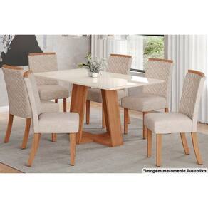 Sala de Jantar Completa Lins c/ Tampo Madeirado c/ Vidro 160x90cm e 6 Cadeiras Malu Nature/Veludo Light Linho - Henn