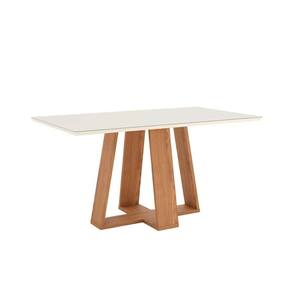 Mesa de Sala Jantar Lins SC93 c/Tampo Madeirado Vidro Reto 160x90cm Nature/Off White - Henn
