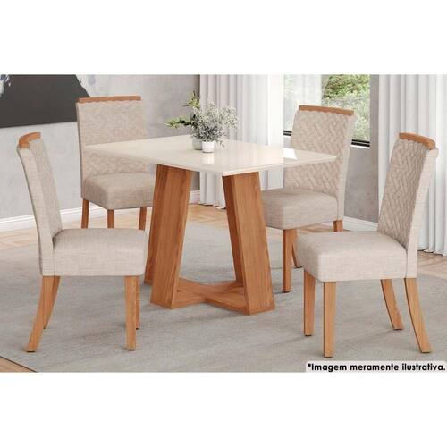 Sala de Jantar Completa Lins Tampo Reto Madeirado c/Vidro 120x80cm e 4 Cadeiras Malu Nature/Veludo Light Linho - Henn