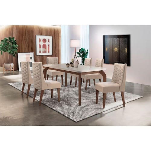 Se é uma sala moderna e sofisticada que você procura, o Conjunto Liz com cadeiras Safira é uma ótima opção.
