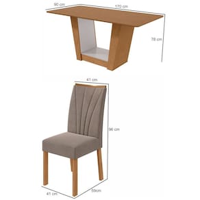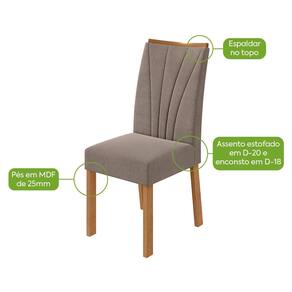 Estrutura: MDF/MDPAcabamento: Pintura U.V., e microtexturaEncosto: Fixo, curvo e ergonômico, estofado com espuma D18Assento: Fixo, estofado com espuma D20Pés: Em MDF com espessura de 25 mm e sapatinha em PVCPeso Suportado: Suporta o peso de 120 KilosDiferencial: Design moderno com encosto curvo e ergonômico; Acabamento com toque aveludado; Cadeira macia e confortável com detalhe amadeirado no topo trazendo elegância; Costuras com linhas verticais que alongam o produto;Dimensões do produto montado Mesa