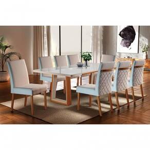 Sala de Jantar Moderna Madeira Maciça 8 cadeiras 2,20x1,10m - Reali - Requinte Salas