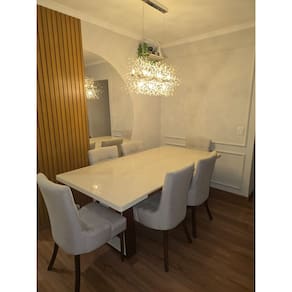 Sala de Jantar Madeira Maciça com Vidro 6 Cadeiras 2,0x1,0m - Real - Requinte Salas - Off White