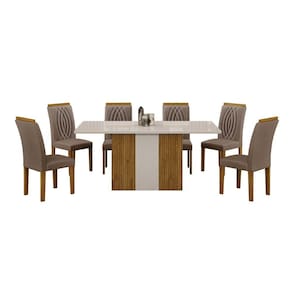 Conjunto de Mesa e Cadeiras Doha. Perfeito para completar a sua casa com estilo, graça e bom gosto. Com ele, você poderá receber seus amigos, familiares e convidados para deliciosas refeições ou reuniões mais intimistas. Medida da Mesa (A x L x P): 75x80x160 Peso da Mesa: 49,12 kg Mesa suporta até: 25 kg 832547: 847048 =B2=A2: =B25=A25 Acabamento da Cadeira/Banco: Pintura UV Acabamento da Mesa: Pintura UV Ambiente Principal: Sala de Jantar Cadeira/Banco estofada: Encosto e Assento Estofados Cadeira/Banco suporta até: 150 kg Complexidade da Montagem: Média: pode ser montado por mais de uma pessoa e/ou necessite de maior conhecimento para montagem Cor: Freijó/Off Cor do Produto: Freijó/Off Cor Secundária: Marrom De Canto (Canto Alemão): Não Enchimento do Assento: Espuma D-20 Escala de Brilho: Fosco Espessura do Tampo: 18 mm Estrutura do Assento: MDF 9 mm Formato do Tampo: Retangular Itens Inclusos: 1 Mesa, 6 Cadeiras, kit ferragens e manual de montagem Manual de Montagem e Instalação: https://cdn2.madeiramadeira.com.br/atributo/leifer-moveis/1317673-mesa-cadeira-doha-160-120.pdf Material da Base da Mesa: MDF Material da Estrutura da Cadeira: MDF Material do Tampo: MDF Medida da Cadeira/Banco (A x L x P): 98x41x56 Medida do Tampo (L x C x E): 160x80 Mesa Extensível: Não Necessita Montagem: Sim Origem do Produto: Nacional Peso da Cadeira/Banco: 8,39 kg Possui Apoio Para os Pés: Não Quantidade de Lugares: 06 Recomendações de Uso, Manutenção e Limpeza: Limpar com pano seco Revestimento da Cadeira/Banco: Veludo Sistema de Montagem: Parafusos
