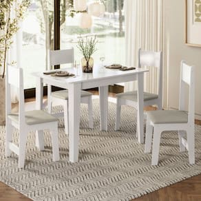 As 4 cadeiras Delta cor branca complementam o conjunto com assento savanna em courino. Medida da Mesa (A x L x P): 76x109x68cm Peso da Mesa: 13,8 kg Mesa suporta até: 100 kg Acabamento da Cadeira/Banco: Pintura UV Acabamento da Mesa: Pintura UV Ambiente Principal: Sala de Jantar Cadeira/Banco estofada: Somente Assento Estofado Cadeira/Banco Estofada: Somente Assento Estofado Cadeira/Banco Suporta Até: 100.0000 Cadeira/Banco suporta até: 100 kg codigo_ean: 7900288264183 Complexidade da Montagem: Baixa: pode ser montado por uma pessoa sozinha Cor: Branco/Savana Cor do Produto: Branco/Savana Cor Secundária: Branco De Canto (Canto Alemão): Não Escala de Brilho: Brilhante Espessura do Tampo: 15 mm Estrutura do Assento: MDP Formato do Tampo: Retangular Itens Inclusos: 1 Mesa, 4 Cadeiras, Kit Ferragens e Manual de Montagem Linha ou Coleção: Delta Manual de Especificação Técnica: https://product-hub-prd.madeiramadeira.com.br/814560850/documents/f2042c57-fbab-4dfb-b49c-7ee23e460bf6327020710561760194294749.pdf Manual de Montagem e Instalação: https://product-hub-prd.madeiramadeira.com.br/814560850/documents/3ce0e98d-53c5-4f29-bbc1-3aa62cf85a333270206105617601942939725.pdf Marca: Sonetto Móveis Material da Base da Mesa: MDF/MDP Material da Estrutura da Cadeira: MDF Material do Tampo: MDP Medida da Cadeira/Banco (A x L x P): 90,5x40x40cm Medida do Tampo (L x C x E): 68cm x 110cm x 1,5cm Mesa Extensível: Não Necessita Montagem: Sim Origem do Produto: Nacional Peso da Cadeira/Banco: 4,2 kg Possui Apoio Para os Pés: Não Quantidade de Cadeiras: 4 Quantidade de Lugares: 04 Recomendações de Uso, Manutenção e Limpeza: Pano umedecido Sistema de Montagem: Parafuso, Cavilha, Sapata, Bucha , Porca, Arruela Marca: Não Informado