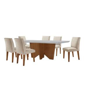Sala de Jantar Mesa Evora 180 Mdf Canto Reto com 6 Cadeiras Grecia Rufato - Off White