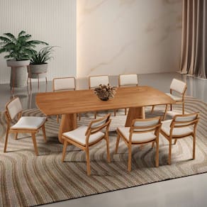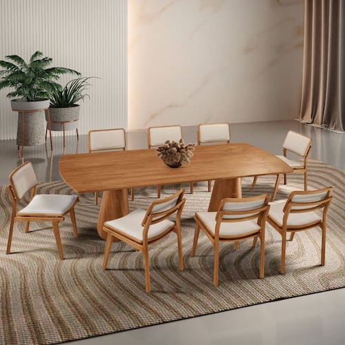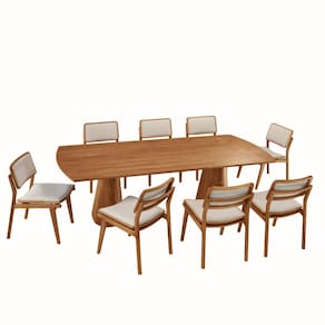 Noronha ? A Natureza Majestosa na Sua Sala de Jantar Inspirada na grandiosidade das montanhas de Fernando de Noronha, a sala de jantar Noronha traduz o esplendor da natureza em um design sofisticado e contemporâneo. Cada detalhe dessa peça foi pensado para unir a imponência dos elementos naturais à praticidade do dia a dia, criando um ambiente único e acolhedor. Produzida com materiais de alta qualidade e acabamento impecável, a mesa Noronha não é apenas um espaço para refeições, mas uma verdadeira obra de arte dentro de casa. Suas formas orgânicas e estrutura robusta evocam a força das paisagens naturais, enquanto sua elegância atemporal garante um toque refinado ao ambiente. As cadeiras Eva complementam esse conjunto com um toque ainda mais natural. Feitas em madeira maciça e cuidadosamente estofadas no assento e encosto, proporcionam o equilíbrio perfeito entre conforto e design. Seu formato envolvente acolhe e convida a desfrutar de momentos inesquecíveis ao redor da mesa. Com Noronha, sua sala de jantar se transforma em um refúgio de beleza e sofisticação, onde o encanto da natureza se encontra com a exclusividade do design premium. Permita-se viver essa experiência. Noronha ? um toque da natureza no coração da sua casa.