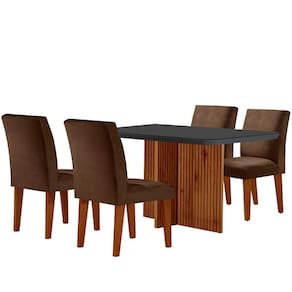 Sala de Jantar Mesa Olimpia 120 MDF Vidro Canto Copo com 4 Cadeiras Grecia - Marrom