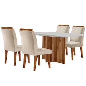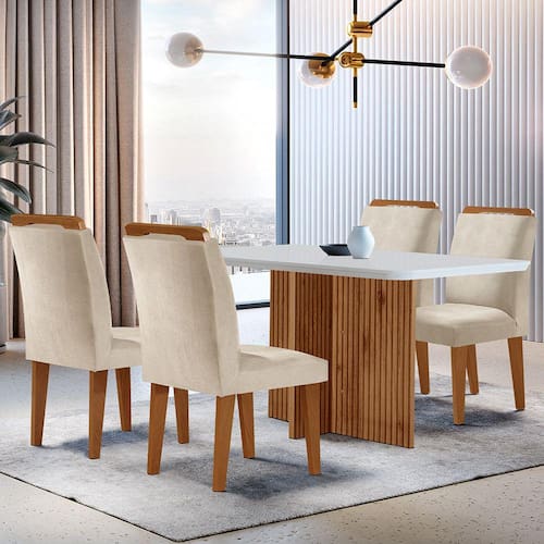 Sala de Jantar Mesa Olímpia 120CM MDF Canto Copo com 4 Cadeiras Athenas Moderna - Bege