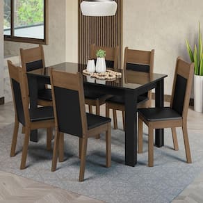 COR: Marrom | Garantia: 3 meses contra defeitos de fabricação | Dimensões - Altura: 76,5 cm | Dimensões - Largura: 136 cm | Dimensões - Profundidade: 75 cm | Peso aproximado: 66 kg | Quantidade de Lugares: 6 lugares | Produto: Conjunto Sala de Jantar | Marca: Madesa | RBN: Casa/Móveis/Móveis para Sala de Jantar/Conjuntos para Sala de Jantar | Material: MDP/MDF | Material para Filtro: MDP/MDF | Estado de Origem: RS | Conteúdo da embalagem: 1 Conjunto de Jantar | Instruções/Cuidados: Utilize um pano limpo, levemente umedecido e seque em seguida a superfície. Não usar produtos químicos ou abrasivos para a limpeza. Recomendamos polir seu móvel com lustra-móveis duas a três vezes por ano. | Nome do Simples no Fornecedor: Conjunto Sala de Jantar Mesa Tampo de Vidro 6 Cadeiras Preto/Rustic Dora Madesa | Produto precisa de Montagem?: Sim | Descrição do Tamanho: 76,5 cm x 136 cm x 75 cm | Largura Produto Com Embalagem (cm): 78 | Altura do Produto com Embalagem (cm): 44.6 | Peso Produto Com Embalagem (Kg): 66,4 | Fabricante: Madesa | Contato do Fabricante: contato@madesa.com | Formato da Mesa: Retangular | Comprimento do Produto com Embalagem (cm): 154,8 Cor: Preto/Rustic
