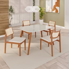 A Sala de Jantar Ceci possui um design moderno e inovador, é o ideal para você que quer aliar resistência e praticidade no dia a dia. Complete a decoração de sua sala com a mesa de jantar com 4 cadeiras. Possui estrutura em madeira maciça e tampo de vidro laqueado com canto arredondado, proporcionando design e segurança. Medida da Mesa (A x L x P): 76X110X80 Peso da Mesa: 22,85 kg Mesa suporta até: 15 kg Acabamento da Cadeira/Banco: Verniz Natural Acabamento da Mesa: Verniz Ambiente Principal: Sala de Jantar Cadeira/Banco Estofada: Somente Assento Estofado Cadeira/Banco estofada: Somente Assento Estofado Cadeira/Banco suporta até: 120 kg codigo_ean: 7900288190406 Complexidade da Montagem: Média: pode ser montado por mais de uma pessoa e/ou necessite de maior conhecimento para montagem Cor: Naturalissimo / Laca / Off White Cor do Produto: Naturalissimo / Laca / Off White Cor Secundária: Marrom De Canto (Canto Alemão): Não Escala de Brilho: Fosco Espessura do Tampo: 15 mm Formato do Tampo: Retangular Itens Inclusos: 1 Mesa, 4 Cadeiras, Manual de Montagem e Ferragens. Linha ou Coleção: Ceci Manual de Montagem e Instalação: https://product-hub-prd.madeiramadeira.com.br/835694792/documents/53eb8842-1875-4d7e-bda3-0dc0b4f194973030252352817513050194478.pdf Marca: Yescasa Material da Base da Mesa: Madeira Maciça Material da Estrutura da Cadeira: Madeira Maciça Material do Tampo: Vidro/MDF Medida da Cadeira/Banco (A x L x P): 82x59x47 Medida do Tampo (L x C x E): 110X80X1,5 Mesa Extensível: Não Necessita Montagem: Sim Origem do Produto: Nacional Peso da Cadeira/Banco: 9,5 kg Possui Apoio Para os Pés: Não Possui Vidro: Sim Quantidade de Cadeiras: 4 Quantidade de Lugares: 04 Recomendações de Uso, Manutenção e Limpeza: Pano levemente umedecido e pano seco. Não utilizar produtos de limpeza Sistema de Montagem: Parafusos, Cavilhas e chave Allem Tipo de Madeira Maciça da Base da Mesa: Tauari