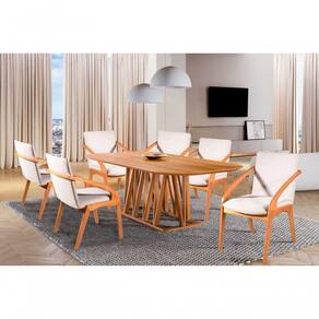 A mesa de jantar Granada é um móvel ideal para sua casa, com design moderno e elegante, que vai agregar a sua decoração tornando sua sala de jantar mais aconchegante! Ela tem uma base super estilosa e moderna com um design diferenciado que é um arraso. Esse modelo tem a base em madeira maciça de Eucalipto e o tampo em MDF laminado, garantindo uma mesa resistente e duradoura. Essa elegante cadeira de jantar combina sofisticação e conforto em um design atemporal. Fabricada em madeira maciça de alta qualidade, possui estrutura robusta e acabamento refinado em tom natural, valorizando a beleza da madeira. O encosto e assento estofados com espuma D-23 garantem o conforto e aconchego para você, seus amigos e familia trazendo uma experiência agradável durante as refeições. Ideal para compor salas de jantar sofisticadas, áreas gourmet ou espaços de convivência, essa cadeira une durabilidade, ergonomia e um design versátil que harmoniza com diversos estilos de decoração..