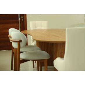 Sala de Jantar Alexandria Royal - Requite Sala - Transforme sua sala de jantar em um ambiente sofisticado e acolhedor com a Mesa Alexandria e as cadeiras Lais e Royal. A mesa, com design contemporâneo e tampo orgânico, é perfeita para complementar sua decoração com estilo e modernidade. As cadeiras Lais, com encosto estofado e anatômico, trazem charme e conforto, enquanto a cadeira Royal, com assento curvo e base em madeira maciça, proporciona elegância e aconchego únicos. O equilíbrio ideal entre beleza, funcionalidade e bem-estar para suas refeições! Faz parte ddo Anúncio.: 1 Mesa de Jantar Tampo Orgânico Alexandria 4 Cadeiras Madeira Maciça Lais 2 Cadeiras com Braço Royal Particularidades da Mesa de Jantar: Características:- Estrutura em MDF laminado;- Base diferenciada;- Tampo orgânico;- Madeira ecologicamente correta;Dimensões da Mesa:Altura: 79 centímetrosLargura: - 2,40m de LarguraProfundidade: - 1,10m de profundidade Particularidades da Cadeira Lais: Características:- Estrutura em Madeira Maciça Tauari;- Encosto e assento estofados;- Encosto anatômico;- Espuma com Densidade D-26;- Feltro de proteção nos pés;- Design moderno, sofisticado e diferenciado;- Baseado em conceitos sustentáveis;- Madeira altamente resistente;Dimensões da Cadeira Lais:Altura: 85 CentímetrosLargura: 50 CentímetrosProfundidade: 50 Centímetros Particularidades da Cadeira Royal: Características:- Madeira Maciça Tauari seca em estufa- Madeira imunizada- Espuma D-26 no assento- Espuma D-20 no encosto- Tecido liso na parte de trás do encosto- Estrutura reforçada- Ecologicamente correta- Peso suportado 150kgDimensões da Cadeira Royal:Altura: 97 centímetrosLargura: 52 centímetrosProfundidade: 61 centímetros Informaçoes Importantes.: -Produtos podem apresentar diferenças de tonalidades entre a foto na tela e o produto real, devido a calibração de cor de tela.-Limpar com flanela ou pano macio. Não utilizar álcool. Não utilizar produtos abrasivos ou corrosivos.-Nós prezamos pela qualidade da entrega em primeiro lugar, trabalhamos com transportadoras altamente selecionadas e os melhores materiais de embalagem.-A montagem é de total responsabilidade do comprador. Antes de comprar, verifique o espaço disponível para a montagem.-Certifique-se de que o produto caiba em elevadores e vãos de escadas, não fazemos içamentos. Quaisquer despesas deste tipo ficam a cargo do cliente-Garantia de 3 meses contra defeitos de fabricação. Marca: Requinte Salas