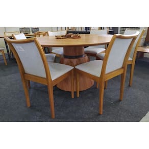 Sala de Jantar Laminada Redonda 6 Cadeiras 1,35m - Phoenix - Requinte Salas A Mesa Piemonte é a pedida certa para você deixar sua casa mais moderna. Com sua base cõnica robusta e tampo em MDF laminado, essa mesa junta resistência e durabilidade com elegância. As cadeiras Phoenix possuem um design moderno e um acabamento incrivél, que vai trazer ao seu ambiente um ar sofisticado e elegante! As cadeiras tem a estrutura em madeira maciça tauari, madeira ecologicamente correta, e o seu encosto estofado. Quanto a durabilidade, esse modelo não deixa nada a desejar, o seu assento é fabricado com espuma de densidade D-26, muito confortável, e as cadeiras suportam ate 150Kg distribuídos. Se você procura uma cadeira elegante e moderna, esse modelo é perfeito!! Por se tratar de madeira maciça, nossa fabricação é toda manual, o que confere ao produto um acabamento impecável. Isso garante a beleza do produto e o conforto. Cada peça é cuidadosamente selecionada e trabalhada para criar uma obra de arte única. Devido à fabricação manual, o tempo solicitado é um pouco maior do que o convencional por isso pedimos um tempo um pouco maior do que os demais produtos. No entanto, garantimos que o resultado vale a pena. Aproveite! Não perca tempo e compre logo a sua sala de jantar. Fazem parte do anúncio 1 Mesa de Jantar Piemonte 1,35m 6 Cadeiras Phoenix Estofada Obs. Objetos de decoração não inclusos. Particularidades da Sala de Jantar Características da Mesa: - Base cônica em MDF laminado; - Tampo em MDF laminado; - Tampo redondo; - Design moderno - Madeira ecologicamente correta. Particularidades da Cadeira: Características: - Fabricada em madeira maciça tauari seca em estufa; - Madeira imunizada; - Espuma D-26 no assento; - Estrutura reforçada; - Ecologicamente correta; - Peso suportado 150kg; Dimensões da Mesa: Altura: 79 centímetros Diâmetro: 1,35 metros Dimensões da Cadeira: Altura: 89 centímetros Largura: 49 centímetros Profundidade: 45 centímetros Informações Importantes: - Produtos podem apresentar diferenças de tonalidades entre a foto na tela e o produto real, devido a calibração de cor de tela. - Limpar com flanela ou pano macio. Não utilizar álcool. Não utilizar produtos abrasivos ou corrosivos. - Nós prezamos pela qualidade da entrega em primeiro lugar, trabalhamos com transportadoras altamente selecionadas e os melhores materiais de embalagem. - As cadeiras vão montadas nas caixas e embaladas. Necessário fixar o assento e o encosto e parafusar, não necessita da montagem de um profissional. A mesa vai semi montada, necessário fixar o tampo a base. - Objetos de decoração não incluso. - Certifique-se de que o produto caiba em elevadores e vãos de escadas, não fazemos içamentos ou desmontagens de produtos. Quaisquer despesas deste tipo ficam a cargo do cliente. - Garantia de 3 meses contra defeitos de fabricação. Marca: Requinte Salas