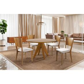 Sala de Jantar Redonda com Vidro Madeira Maciça 4 Cadeiras 1,10m - Ametista - Harmonia Salas A mesa de jantar Ametista é um móvel ideal para sua casa, com design moderno e elegante, que vai agregar a sua decoração tornando sua sala de jantar mais aconchegante! Ela tem a base com um formato que deixa amplo espaço para o encaixe das cadeiras, charmosa e clean. Esse modelo tem a base em madeira maciça de Eucalipto e o tampo em MDF laminado com vidro sobreposto de 4mm, garantindo uma mesa resistente e duradoura. As cadeiras para mesa de jantar Violeta, possuem um estilo elegante e moderno para deixar sua sala de jantar mais bonita e confortável. A cadeira Violeta conta com um encosto em madeira, que proporciona um charme a mais a esse modelo. O assento é fabricado com espuma de densidade D-23 reforçando o conforto do produto, sua estrutura é toda em madeira maciça de eucalipto, ecologicamente correta. Devido à fabricação manual, o que compete ao produto um acabamento impecável, o tempo solicitado é um pouco maior do que o convencional por isso pedimos um prazo um pouco maior do que a maioria dos produtos. No entanto, garantimos que o resultado vale a pena. Faz parte do anúncio: 1 Mesa de Jantar Redonda Ametista com Vidro 1,10m 4 Cadeiras Violeta Obs.: Objetos de decoração não acompanham o produto. Particularidades da Sala de Jantar: Características da Mesa: - Base em madeira maciça de Eucalipto; - Tampo em MDF laminado; - Vidro sobrepsoto de 4mm; - Tampo redondo; - Acabamento em verniz PU semi-fosco; - Madeira tratada e seca em estufa; - Design moderno, sofisticado e diferenciado; - Madeira Ecologicamente Correta; - Baseado em conceitos sustentáveis; Dimensões da Mesa: Altura: 78 centímetros Diâmetro: 1,10 metros Características da Cadeira: - Madeira Maciça de Eucalipto seca e tratada em estufa; - Madeira imunizada; - Espuma D-23; - Estrutura reforçada; - Ecologicamente correta; - Peso suportado recomendado 150kg. Dimensões da Cadeira: Altura: 89 centímetros Altura do assento: 48 centímetros Largura: 44 centímetros Profundidade: 44 centímetros Informações Importantes: - Produtos podem apresentar diferenças de tonalidades entre a foto na tela e o produto real, devido a calibração de cor de tela. - Limpar com flanela ou pano macio. Não utilizar álcool. Não utilizar produtos abrasivos ou corrosivos - Nós prezamos pela qualidade da entrega em primeiro lugar, trabalhamos com transportadoras altamente selecionadas e os melhores materiais de embalagem. - As cadeiras vão 100% montadas nas caixas e embaladas. Não necessita da montagem de um profissional. - Objetos de decoração não incluso. - Certifique-se de que o produto caiba em elevadores e vãos de escadas, não fazemos içamentos ou desmontagens de produtos. Quaisquer despesas deste tipo ficam a cargo do cliente - Garantia de 3 meses contra defeitos de fabricação. Marca: Harmonia Salas