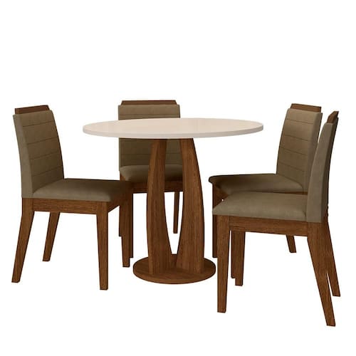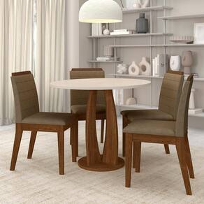 Sala De Jantar Redonda Fontana Com 4 Cadeiras Freijó/off/capuc - M.a - Marrom