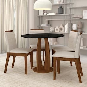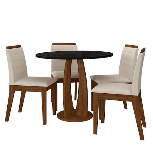 Sala De Jantar Redonda Fontana Com 4 Cadeiras Freijó/preto/bege - M.a