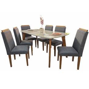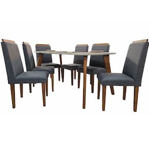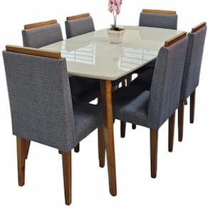 Que tal o Conjunto de Mesa de Jantar Jade com Cadeiras Arezzo? Com o Conjunto Jade Arezzo, sua sala de jantar será o cenário perfeito para momentos memoráveis. Composto por uma mesa com tampo em MDF de 30 mm espessura, pés em madeira maciça e 6 cadeiras estofadas em espuma, revestidas em tecido linho com pês de madeira maciça, este kit proporciona conforto e praticidade para o seu dia a dia. A mesa, com seu design moderno, tem tampo com aplicação de vidro, adicionando um toque de elegância ao ambiente. Por falar nisso, o visual sofisticado das peças é evidenciado pela valorização do tom amadeirado e a coloração neutra, tornando sua casa ainda mais encantadora e bonita. Com esse conjunto, temos certeza que você e sua família partilharão ótimos momentos juntos