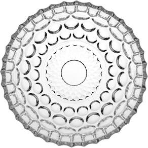Essa linda saladeira é confeccionada em vidro transparente de alta qualidade. A superfície tem baixos relevos que formam círculos e a borda tem pequenas ondulações.