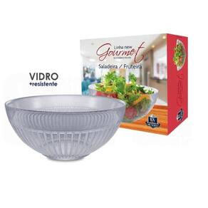 Descriçãobr / Distribuído por: casa das serrasbr / br / Características:br / - a saladeira / bowl de vidro da ruvolo é muito prática e com designer diferenciado, vidro extremamente resistente e com uma delicada aparência.br / - acima de tudo utilizada para almoços, jantares, café da manha e festas.br / - portanto a saladeira / bowl de vidro é perfeita para à mesa, garantindo uma sofisticada decoração.br / br / Descrição do produto:br / - dimensões:br / Diâmetro: 21cmbr / Altura: 9,4cmbr / - peso: 1,2kgbr / - material: vidrobr / - cor: transparentebr / - uso: ideal para saladas, frutas, cupcakes e pães.br / - : 3 meses de fábricabr / - conservação: para conservar seu produto sempre utilize água e sabão neutro, não utilizar produtos abrasivos.br / br / Conteúdo da embalagem:br / 1 - bowl de vidro gourmetbr / br / Imagens meramente ilustrativas Marca: Não Informado Ean: 7908011003085