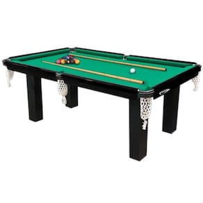 Acompanha 15 bolas numeradas (50mm), 01 branca e 2 tacos de 1,35 m.