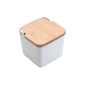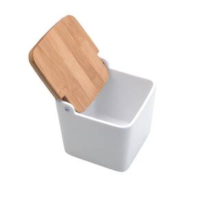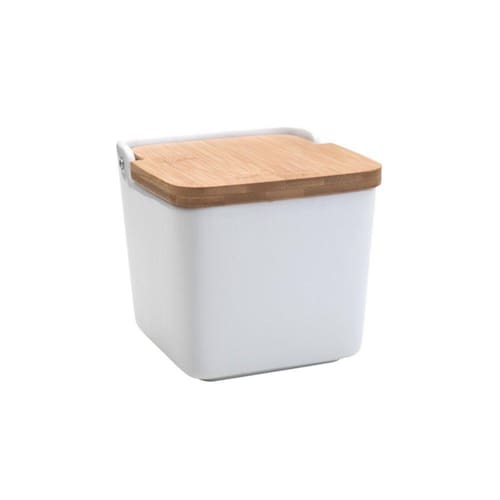Saleiro de Mesa de Cerâmica com Tampa de Bambu e Colher Bianco 10cm x 10,5cm x 10cm - Lyor