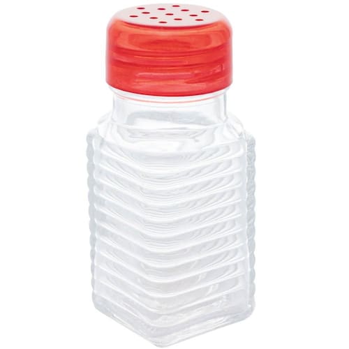 Saleiro de Vidro Borossilicato 80ml Lyor Porta Sal de Mesa Dosador Tampa Plástica Vermelha.