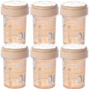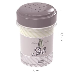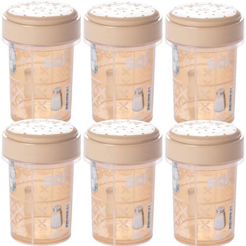 Conjunto com 6 unidades. Saleiro de mesa plástico com capacidade para 140ml. Possui tampa com rosca e decoração com tecnologia intra imagem, garantindo vida longa ao desenho, sem desbotar ou apagar com o uso.Material: polipropilenoCapacidade: 0,14 litrosComprimento: 6,1 cm / Largura: 6,1 cm / Altura: 9,0 cm
