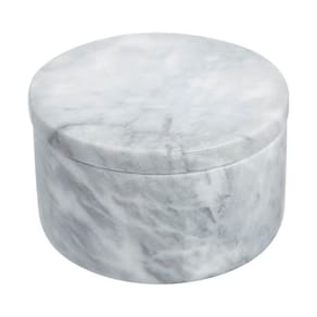 O sal tem papel fundamental no sabor da comida que preparamos em casa! Para dispor sempre da quantidade necessária, conte com o Saleiro Petra Marble. Fabricado em mármore, possui capacidade para 190 gramas e sua estampa conta com um padrão de veios em tons de cinza claro e branco. A tampa é removível, e confere um visual moderno e refinado à decoração de cozinhas.