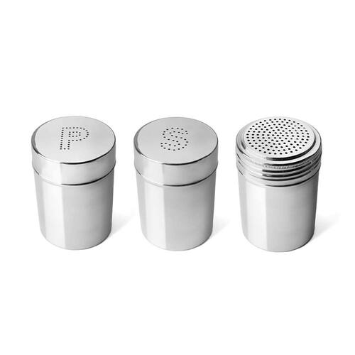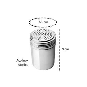 Contêm: 1 Saleiro 1 Pimenteiro 1 Porta Tempero Material: Aço Inox Dimensão: 6,5 x 9 cm