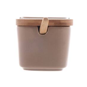 Saleiro quadrado cerâmica tampa e colher bambu de mesa 350g O saleiro de cerâmica com tampa e colher de bambu, oferece uma solução elegante e funcional para armazenar e acessar facilmente o sal durante o preparo das suas refeições ou mesmo na mesa. Fabricado com cerâmica de qualidade e uma tampa de bambu, este saleiro combina durabilidade com um visual encantador que complementa qualquer estilo de decoração de cozinha. Acompanhado por uma colher de bambu, este saleiro torna o acesso ao sal ainda mais conveniente, proporcionando uma experiência de cozinha sem esforço. Com dimensões de 9cm x 8,5cm, este saleiro é compacto o suficiente para caber cerca de 350g, em qualquer bancada ou prateleira, mantendo o sal sempre ao alcance das mãos durante o cozimento.