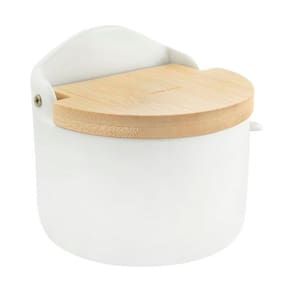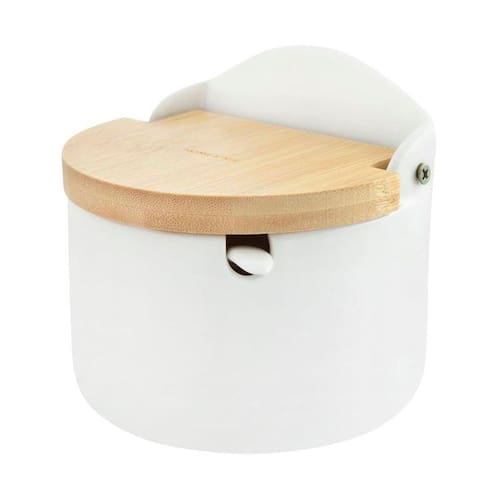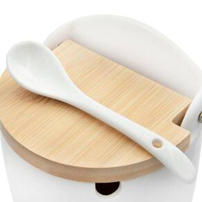 O sal tem papel fundamental no sabor da comida que preparamos em casa! Para dispor sempre da quantidade necessária, conte com o Saleiro com Colher Bambus Linn. Com estrutura em cerâmica e tampa em bambu, ele confere um visual clean à cozinha e torna prático o ato de cozinhar.
