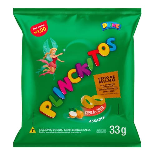 Plinckitos - Sabor Cebola & Salsa Traga sabor e diversão para o seu lanche com os Plinckitos sabor cebola e salsa! Esses deliciosos salgadinhos de 33g são feitos com milho de qualidade e assados para