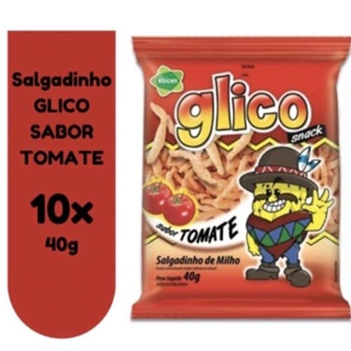 Kit Contendo 10 pacotes de Salgadinho Glico Sabor Tomate 40 gramas cada.