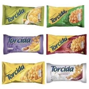 Pacote contedo 70 gramas do delicioso salgadinho de trigo Torcida. Nos sabores Pimenta Mexicana, Cebola, Bacon, Churrasco, Queijo e Calabresa.