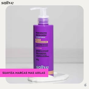 O Hidratante Renovador Corporal Sallve oferece uma ação super completa de cuidados. Ele esfolia e restaura sem ressecar, reduz e previne os pelos encravados, uniformiza o tom da pele, incluindo de regiões como axilas e virilha. Além disso, melhora a textura de áreas rugosas e ásperas, recuperando a sedosidade.