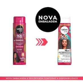O Condicionador SOS Cachos 10 em 1 Multibenefícios 300ml traz hidratação profunda, fios 5x mais reparados e brilho extremo aos seus cabelos