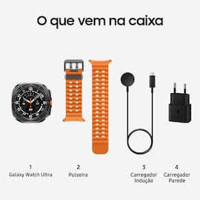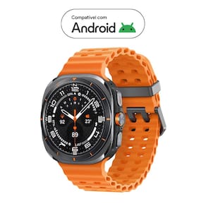 "Samsung Galaxy Watch Ultra Smartwatch 47mm LTE, Galaxy AI, Titânio Aeroespacial, Tela em Cristal de Safira, GPS de Dupla Frequência, Monitoramento avançado de saúde, sono e de coração. Construído para ultrapassar os limites, o Galaxy Watch Ultra resiste a até 55 °C de calor, 9.000 m de altitude e 10 ATM de pressão da água, suportando tudo isso sem problemas com sua nova estrutura em titânio aeroespacial e vidro em cristal de safira. O novo processador de 3nm potencializa sua rotina diária. Alterne rapidamente entre verificar o clima e monitorar seus treinos em um instante. Além disso, ele otimiza a vida útil da bateria para uma energia de longa duração, garantindo que o seu Galaxy Ultra acompanhe o seu ritmo. Seja escalando penhascos ou fazendo trilha por dias, ultrapasse os limites sem se preocupar com a recarga durando até 100 horas no modo Economia de energia. Fique à frente na sua jornada de bem-estar com o nosso sensor de saúde mais avançado no Galaxy Watch. Com 13 LEDs, o novo BioActive Sensor monitora sua frequência cardíaca, padrões de sono e muito mais com alta precisão. Leve o seu treino para o próximo nível com o Galaxy Watch Ultra. Crie sua rotina de exercícios perfeita com aquecimentos, relaxamentos e intervalos, ou compita contra seus recordes anteriores para se manter motivado. Acompanhe seus treinos facilmente, debaixo do sol escaldante, com sua tela de 3.000 nits. Entenda melhor seu corpo e comece seu dia de forma mais inteligente com a Pontuação de Energia. Verifique seu sono, frequência cardíaca e atividades diárias e planeje sua rotina todos os dias. Não descansou tão bem? Talvez seja melhor pular a academia e relaxar em casa para voltar aos trilhos. Encontre o seu caminho com facilidade com o GPS mais preciso de todos os tempos no Galaxy Watch. O GPS de frequência dupla usa duas bandas de sinal de satélite (L1+L5), garantindo rastreamento preciso e consistente, mesmo em meio a densos blocos urbanos. Se suas mãos estiverem ocupadas e alguém ligar, basta pinçar seus dedos duas vezes para atender. Um simples gesto é tudo o que você precisa para tirar uma foto, atender uma chamada ou desligar um alarme. O sensor Analise de Impedância Bioelétrica (BIA) pode medir a composição do seu corpo, usando apenas as pontas dos dedos. Defina suas metas de peso, gordura corporal e massa muscular e personalize programas para atingir suas metas de saúde com precisão."